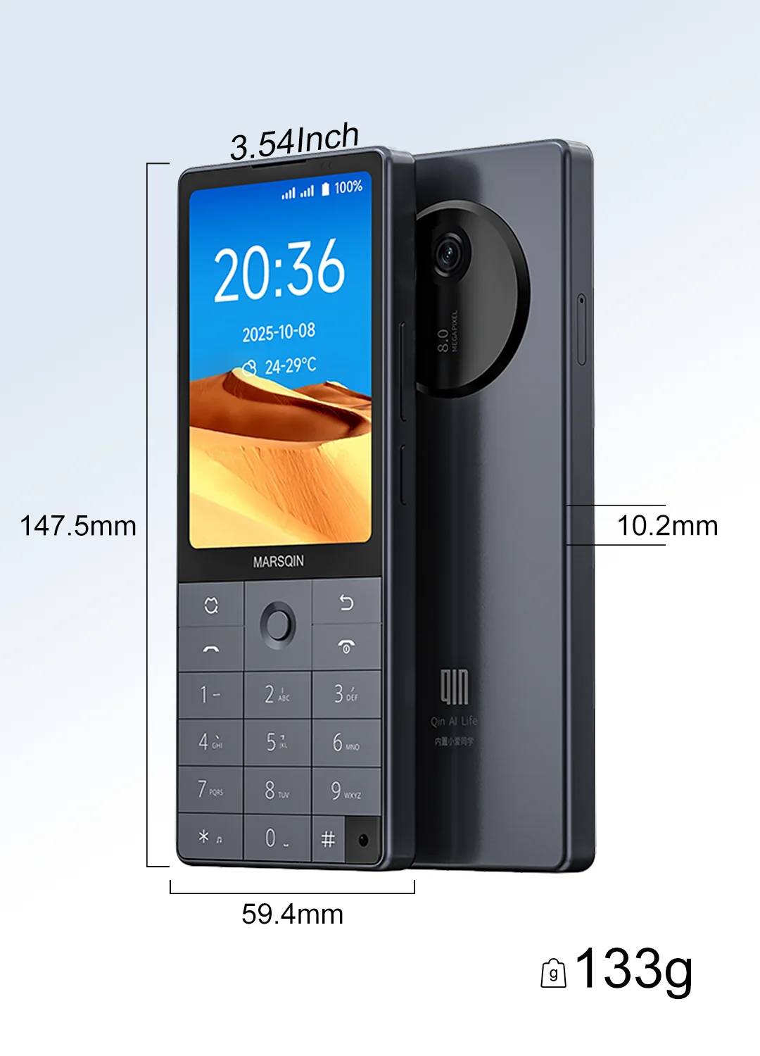 ה-QIN F25 מעוצב בקווים מודרניים ואלגנטיים, קל וקומפקטי במיוחד, עם מסך קטן ונוח להפעלה ביד אחת.